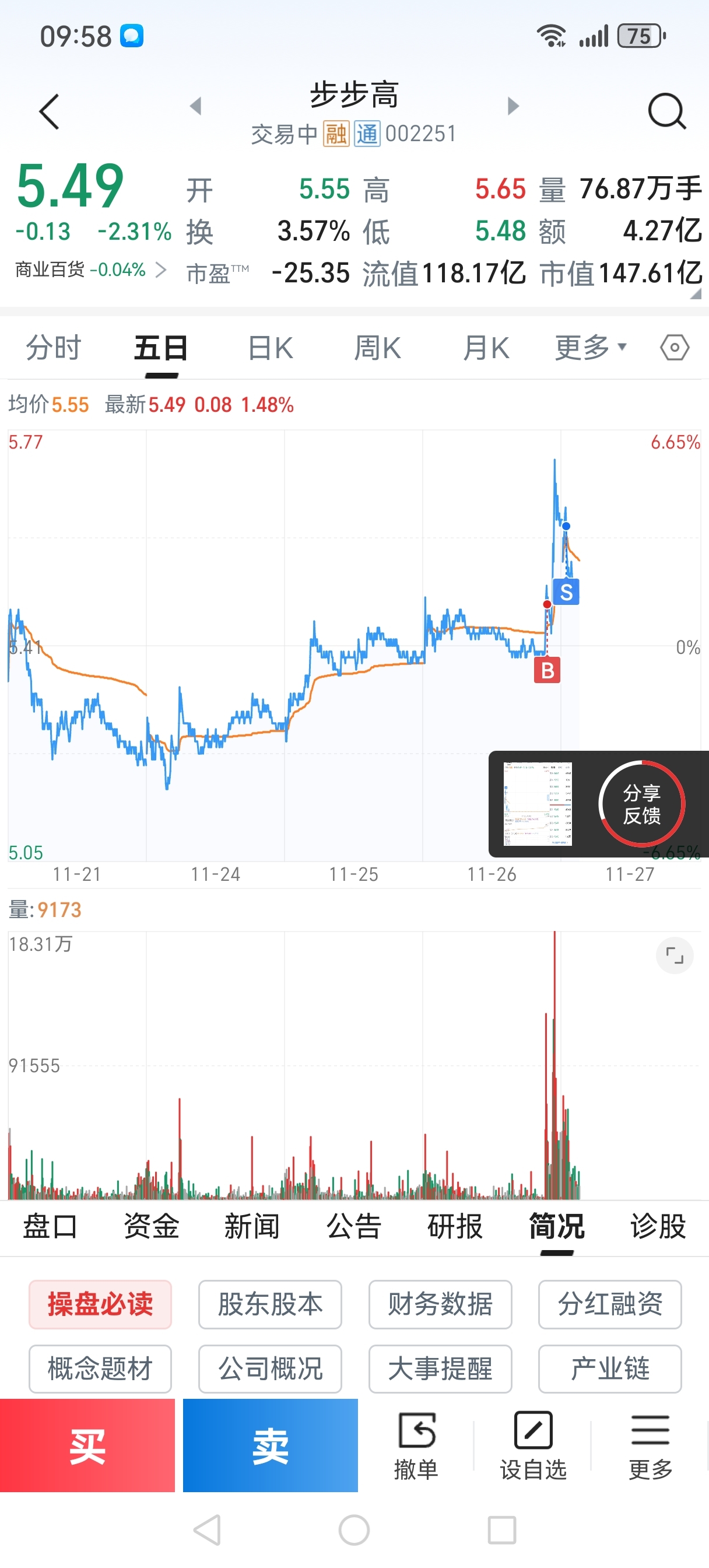 $步步高(SZ002251)$ 尾盘进来的早上出来2个多点也可以了。感谢