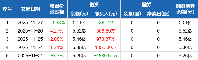 步步高:融资净偿还89.62万元,融资余额5.51亿元(11-27)