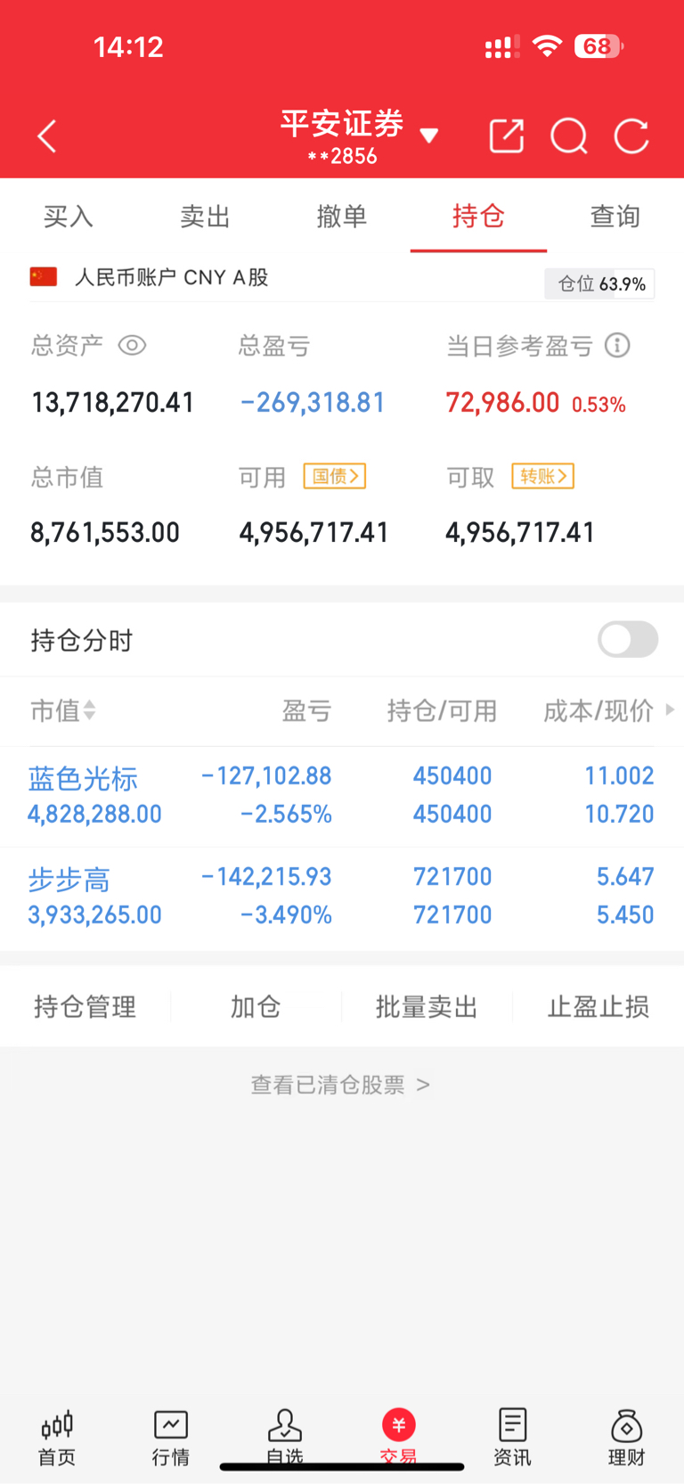 今天目前小亏。继续拿好$步步高(SZ002251)$ 和$蓝色光标(SZ300058)$