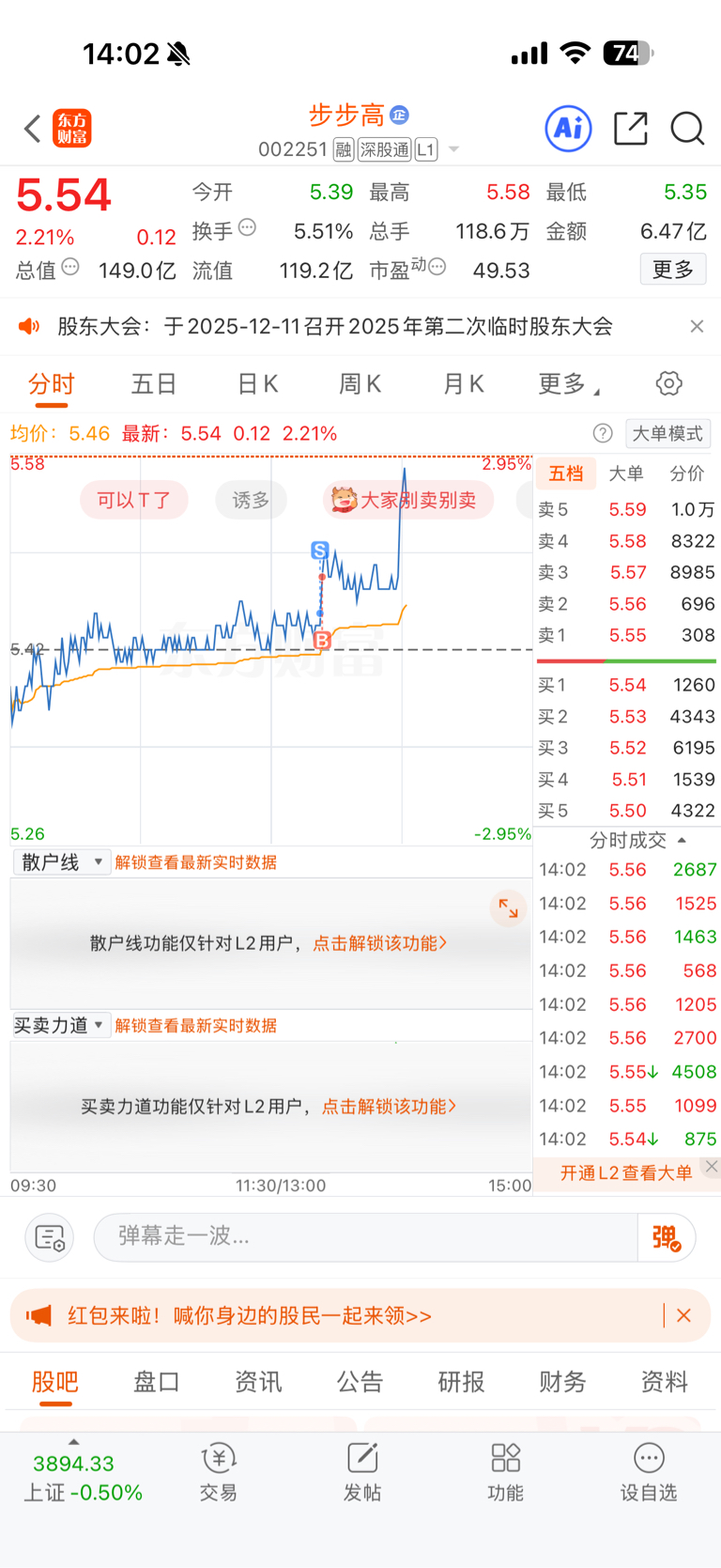 $步步高(SZ002251)$ 以为做个t的,结果一下子上去,成本还多了3分钱