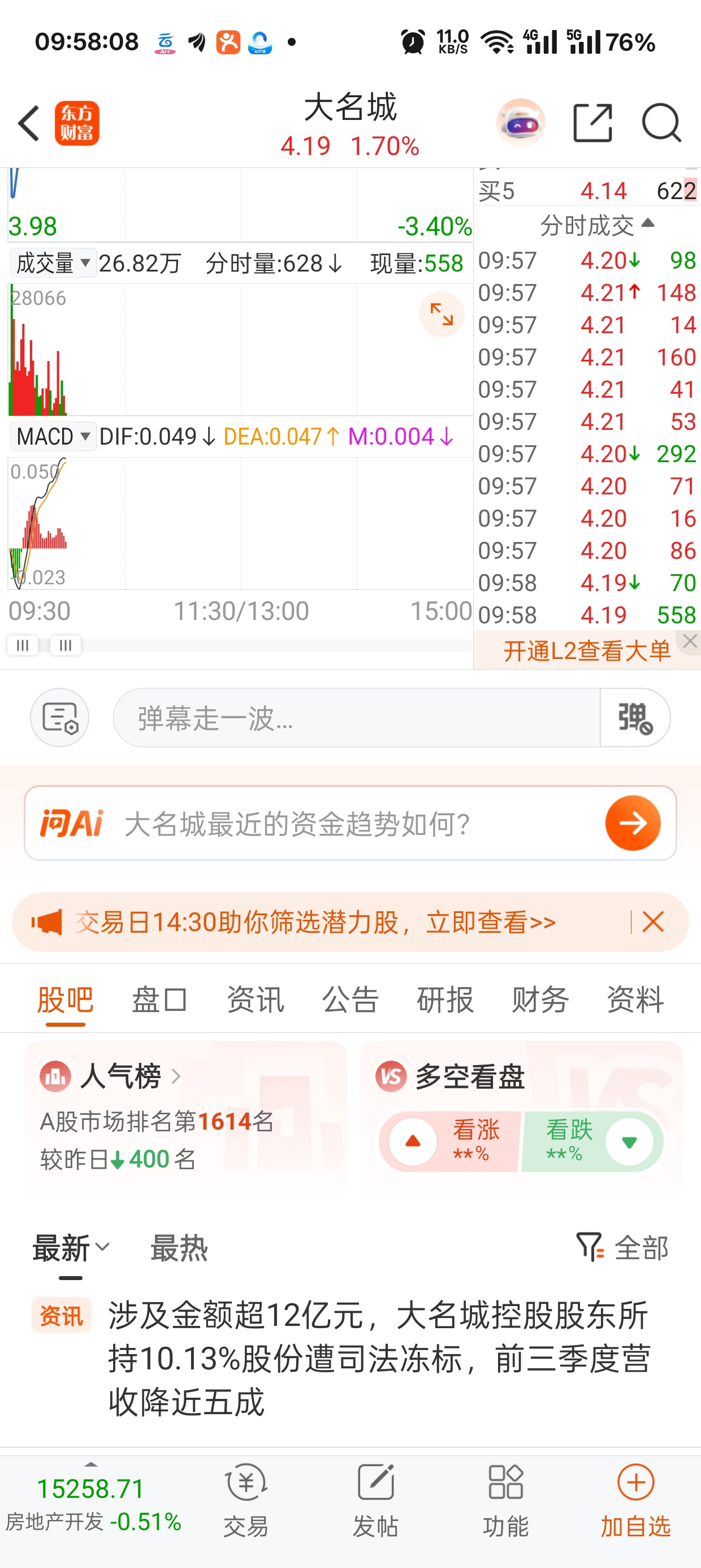 人家涉案的司法冻结还涨了你这个保护性司法冻结大跌,吃相太难看了