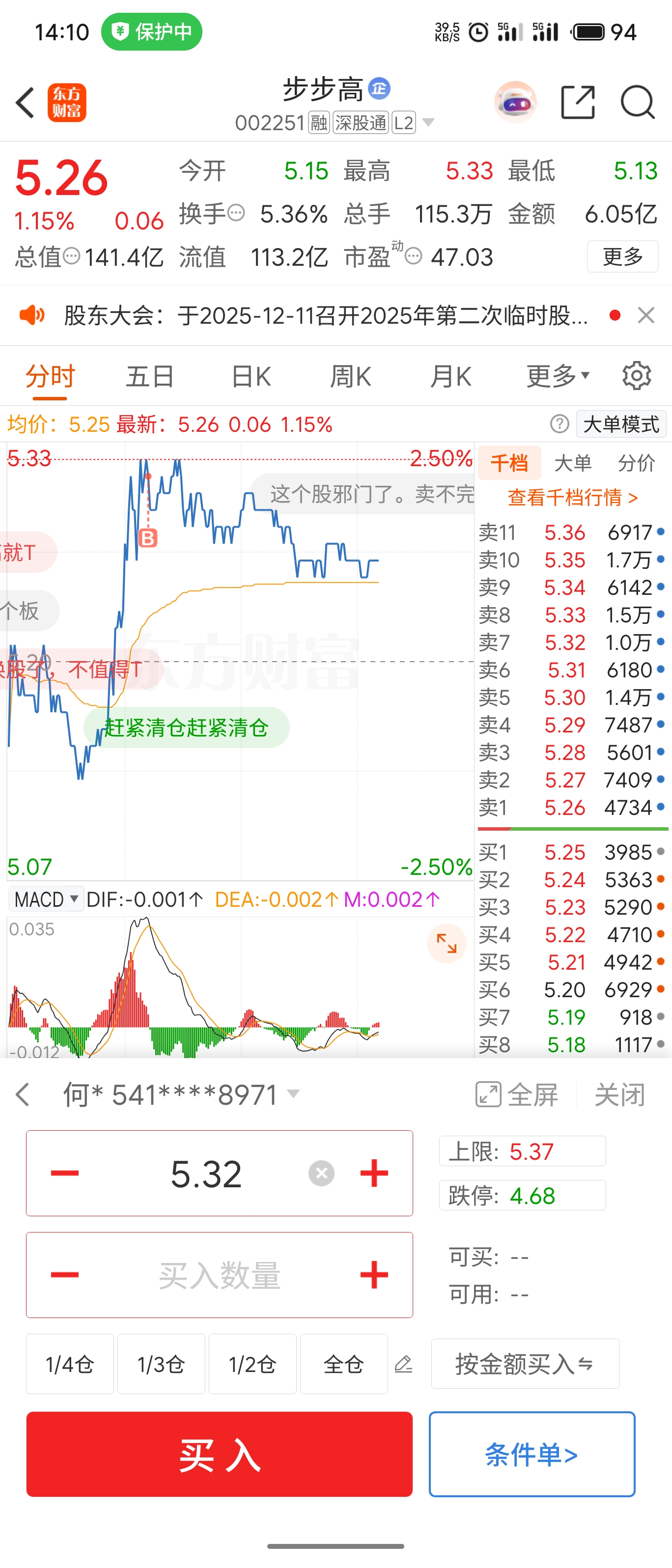 $步步高(SZ002251)$ nmgb给老子挂山顶了