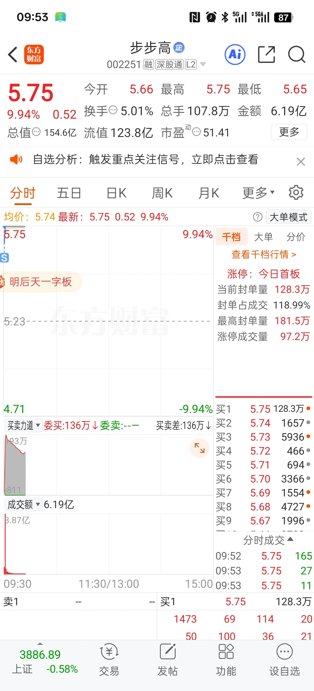 $步步高(SZ002251)$ 开盘就把我洗走了。