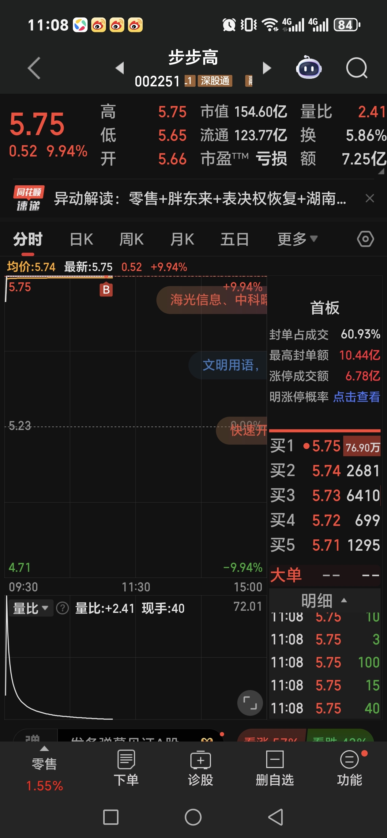 $步步高(SZ002251)$ 怎么感觉有点危险,我开盘挂的,竟然排上来了,