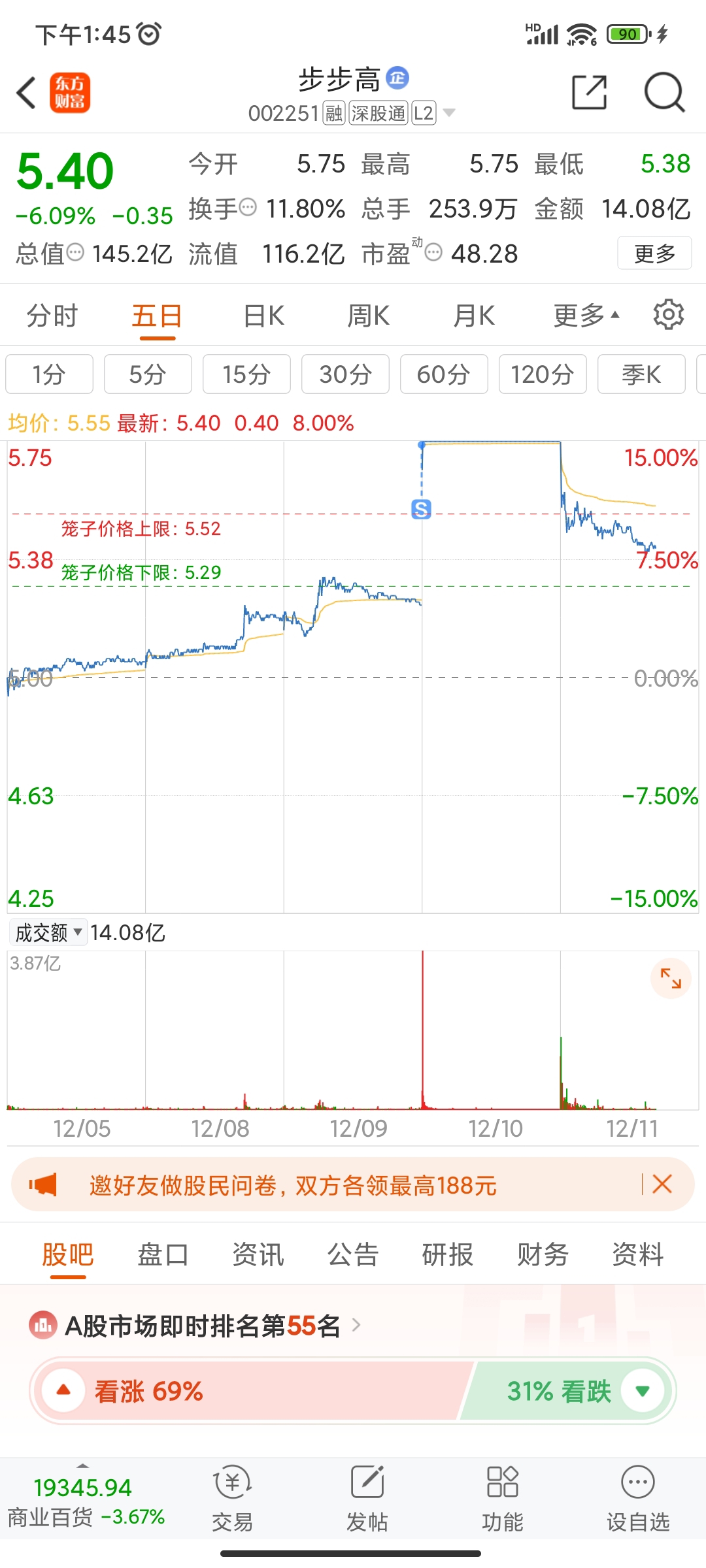 $步步高(SZ002251)$ 真不能格局,昨天跑的快