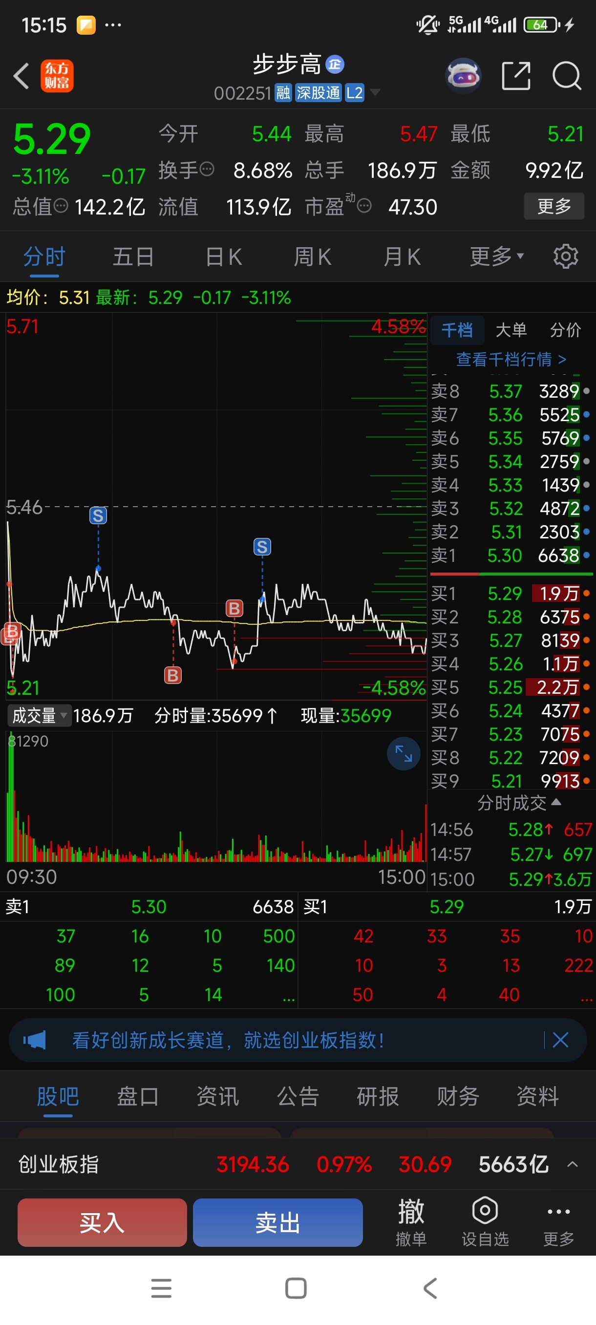 $步步高(SZ002251)$ 前天5.75回本没卖,今天又给套上了,没办法T一下!够庄太狠毒了!