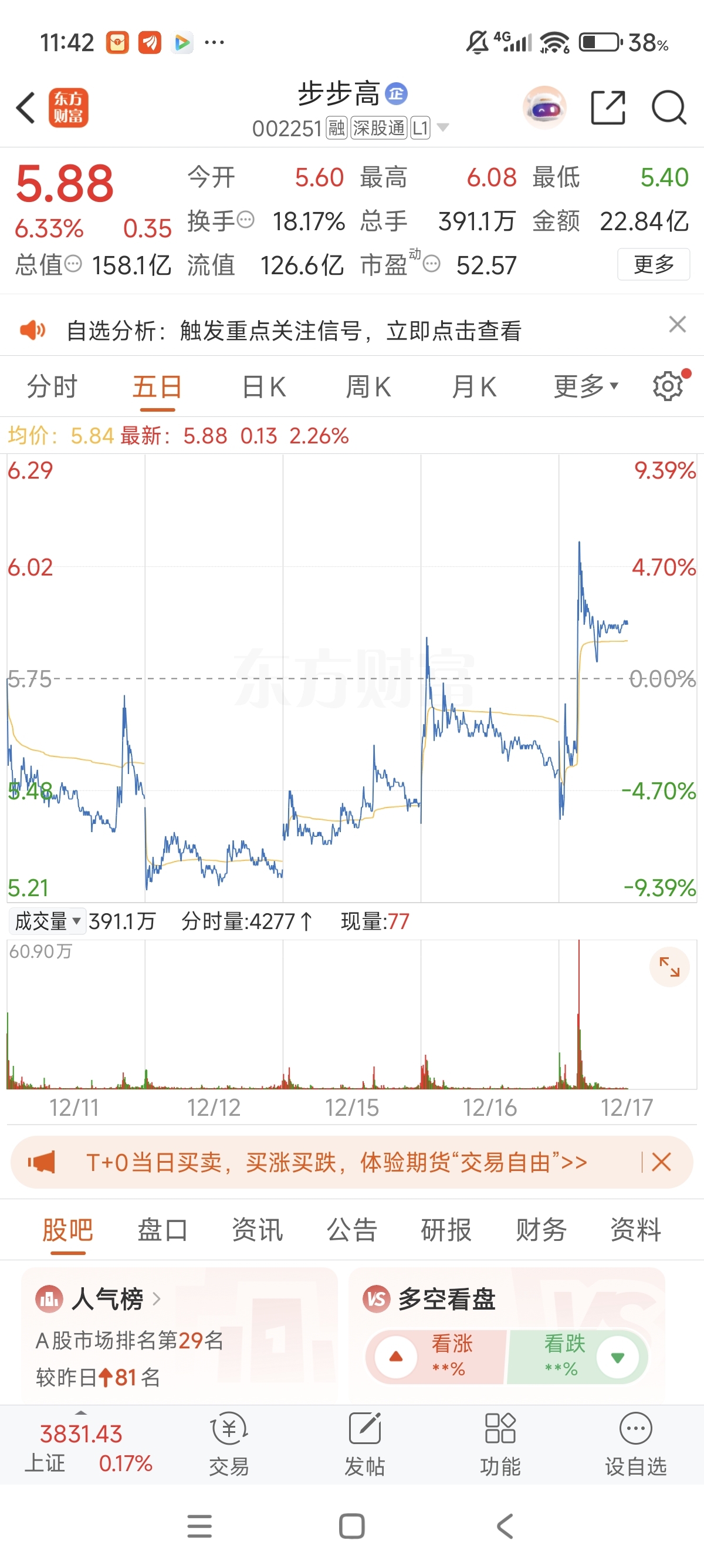 $步步高(SZ002251)$ 跟前天走势一摸一样