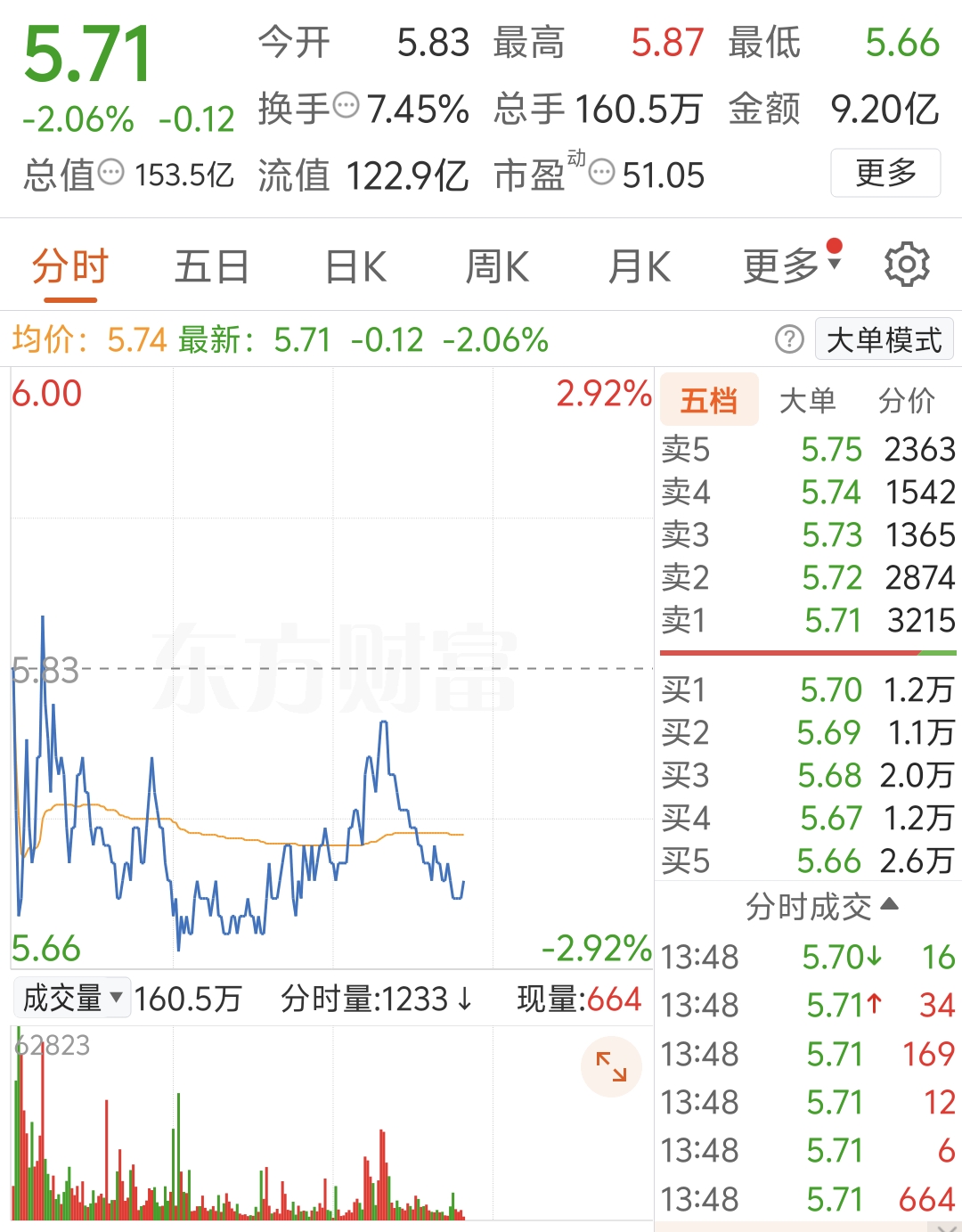 看见买1到买5这么多托单,我就知道今天要跌破5.66,不信盘后验证