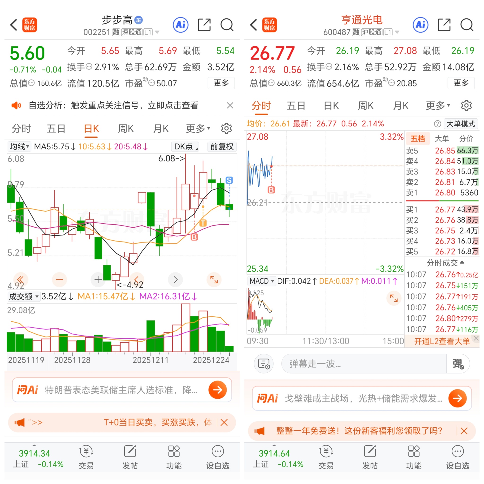 已卖步步高,你可以涨了,亏1.5个点,已经换享通光电