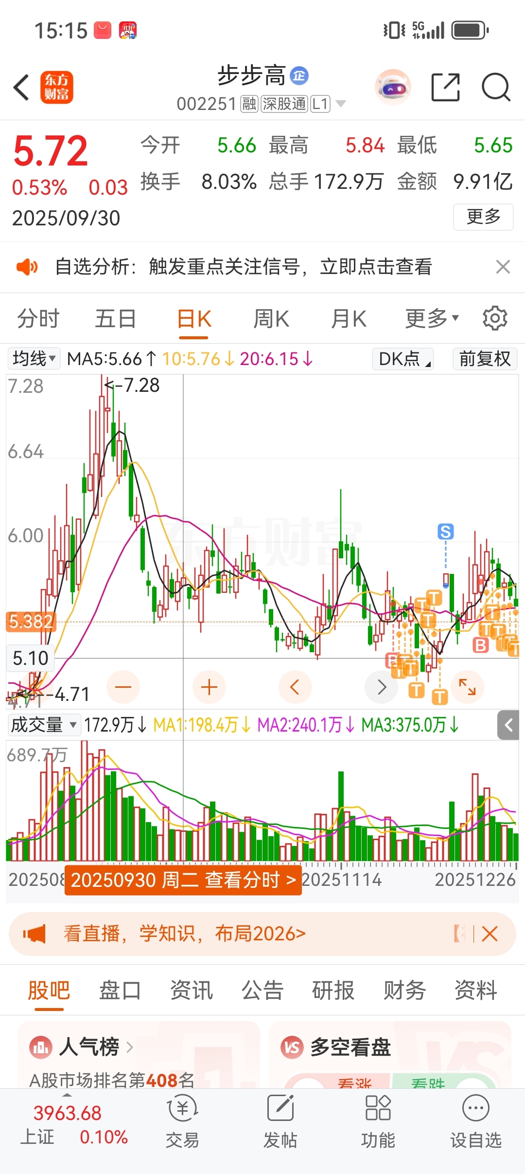 $步步高(SZ002251)$ 哎天天做T成本也降下来了