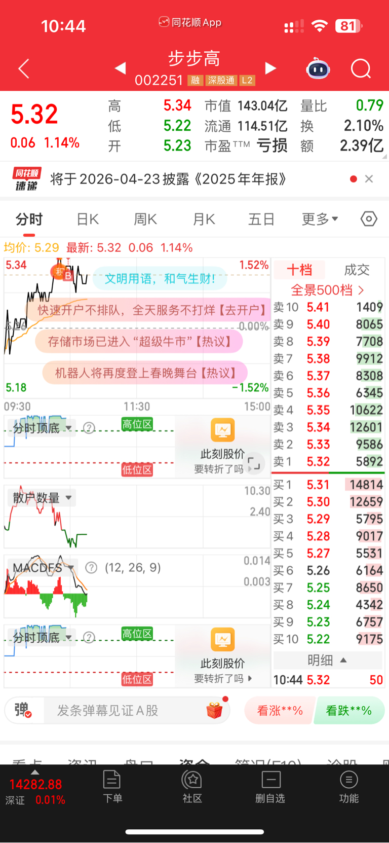 $步步高(SZ002251)$ 5.34买入,坐等大赔。