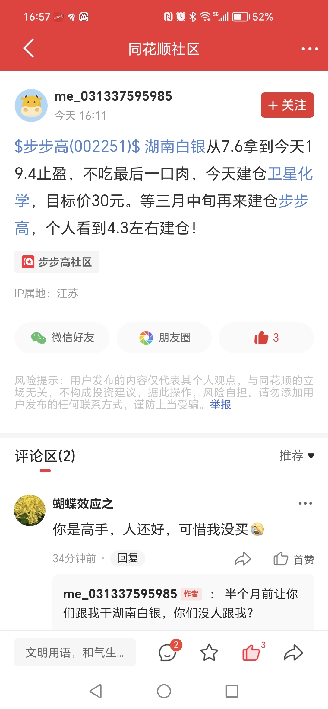 温馨提示: 1.根据《证券法》规定,禁止编造、传播虚假信息或者误导性信息,扰乱证券市场;2.用户在本社区发表的所有资料、言论等仅代表个人观点,与本网站立场无关,不对您构成任何投资建议。用户应基于自己的独立判断,自行决定证券投资并承担相应风险。《东方财富社区管理规定》