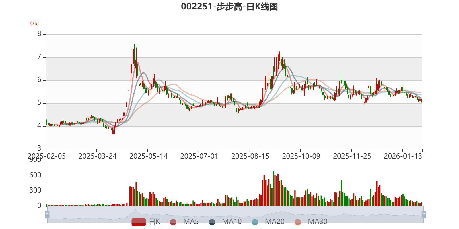 中证智能财讯步步高(002251)1月29日晚间披露2025年度业绩预告,预计2025年归母净利润1亿元至1.5亿元,同比下降87.62%-91.75%;扣非净利润亏损1.26亿元至1.89亿元,上年同期亏损9.78亿元;基本每股收益0.04元/股-0.06元/股。以1月29日收盘价计算,步步高目前市盈率(TTM)约为92.31倍-138.47倍,市净率(LF)约1.69倍,市销率(TTM)约3.38倍。