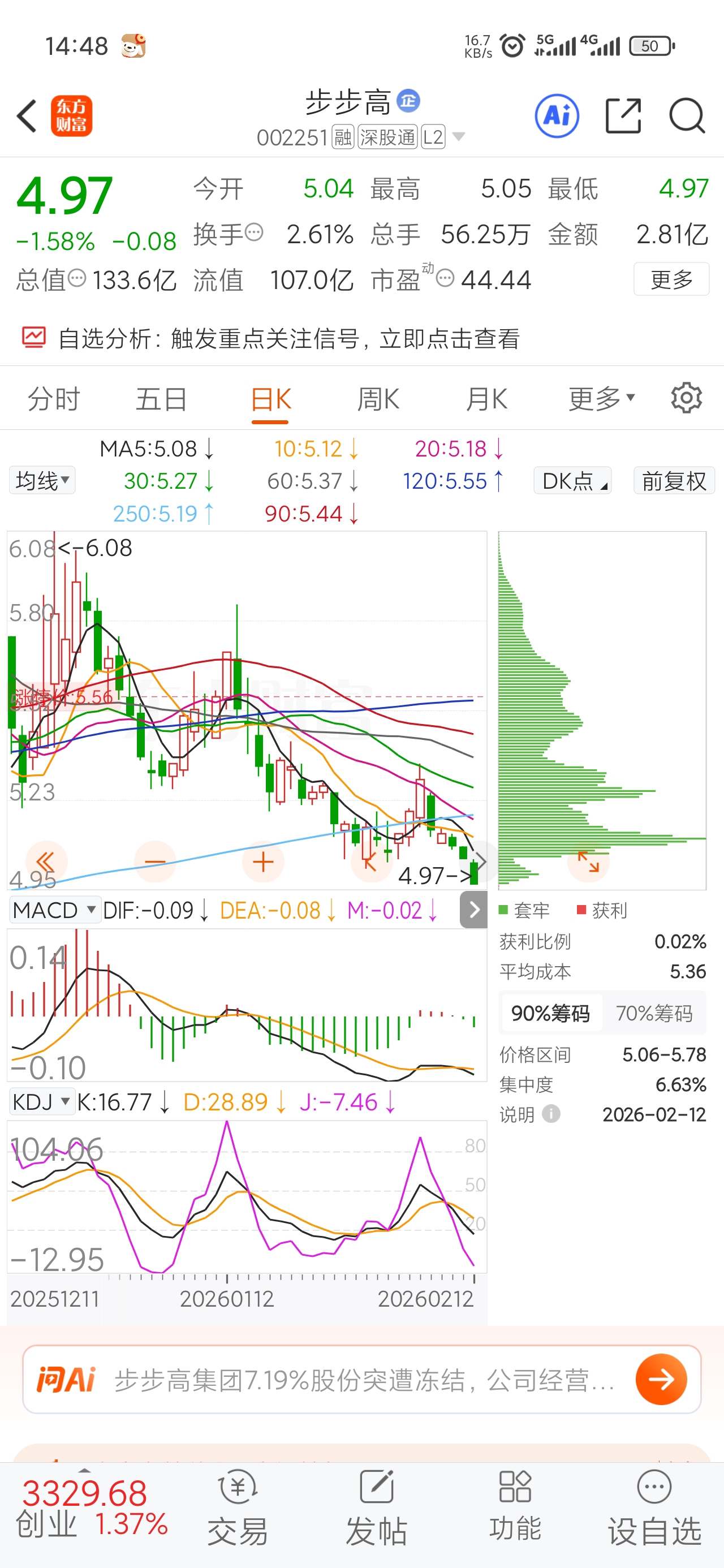 $步步高(SZ002251)$ 差评,还有0.02%获利盘