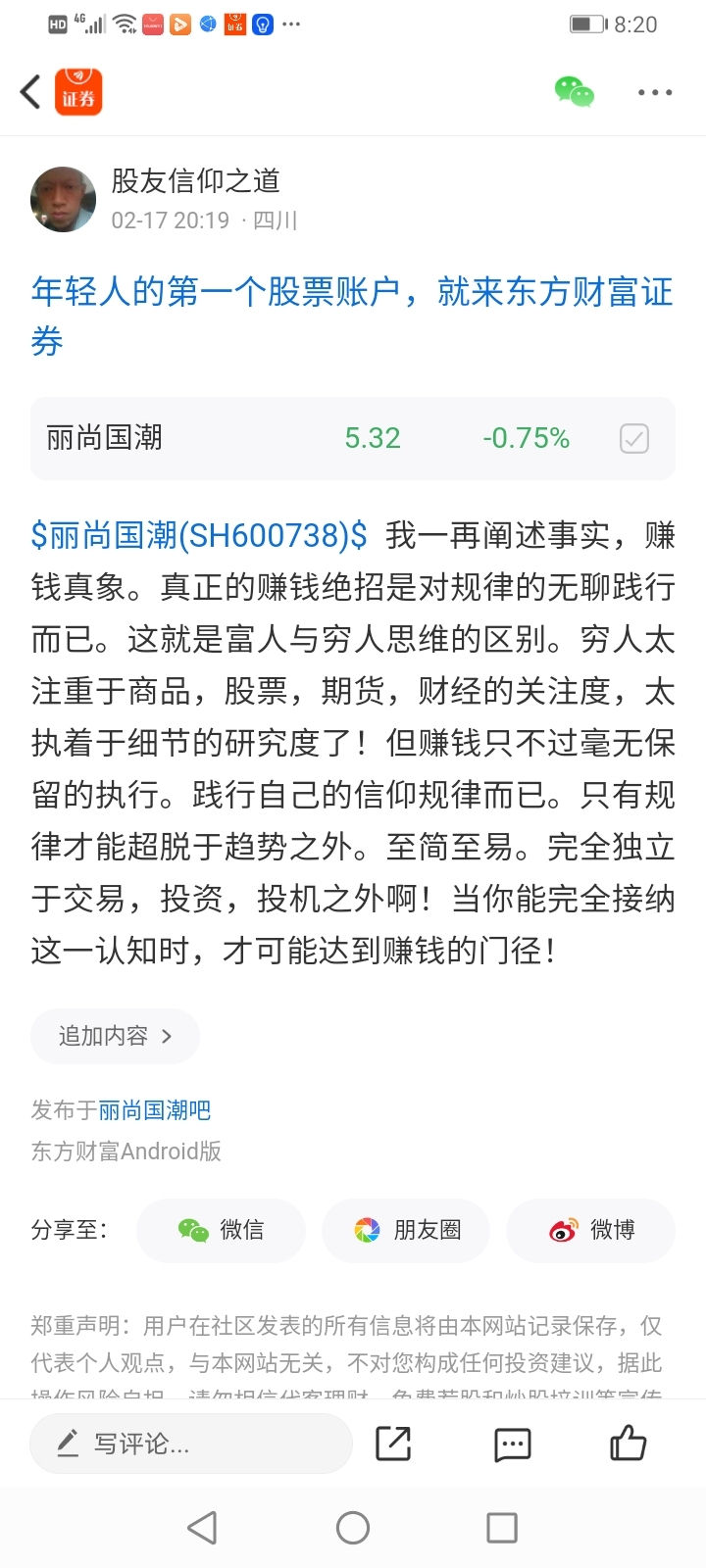 温馨提示: 1.根据《证券法》规定,禁止编造、传播虚假信息或者误导性信息,扰乱证券市场;2.用户在本社区发表的所有资料、言论等仅代表个人观点,与本网站立场无关,不对您构成任何投资建议。用户应基于自己的独立判断,自行决定证券投资并承担相应风险。《东方财富社区管理规定》