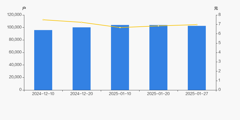 2024年12月10日至今,公司股东户数有所增长,区间涨幅为7.01%。2024年12月10日至2025年1月27日区间股价下降6.94%。