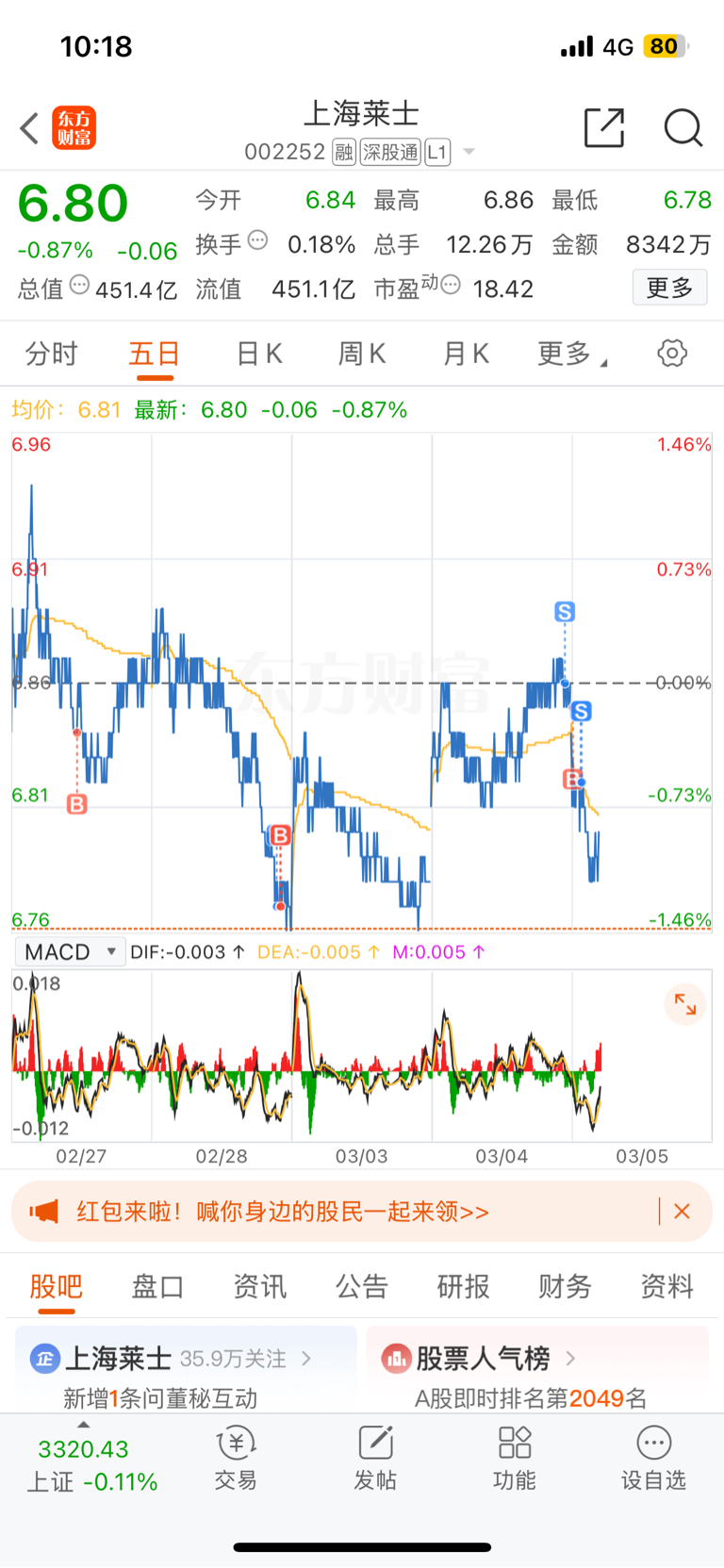 $上海莱士(SZ002252)$ 重仓卖 轻仓了 海尔 吃巴巴去吧!