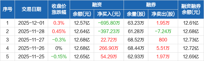 上海莱士:融资净偿还695.8万元,融资余额12.57亿元(12-01)