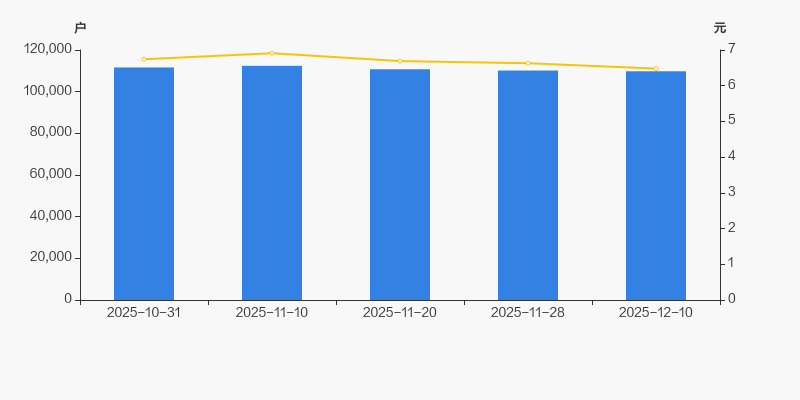 自2025年11月10日以来,公司股东户数连续3期下降,截至目前减幅为2.33%。2025年11月10日至2025年12月10日区间股价下降6.22%。