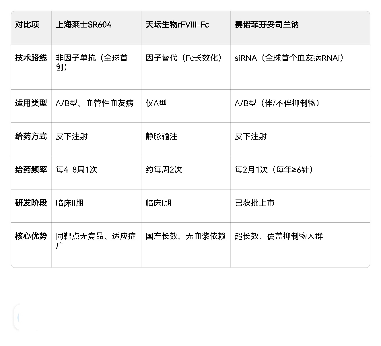 $上海莱士(SZ002252)$ 三家公司血友病创新药特点对比