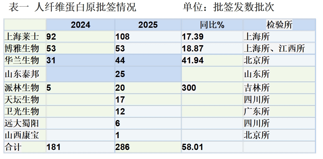 根据博雅生物财报数据,人纤维蛋白原毛利率稳居60%以上,各大血制品生产企业均加快了研发生产步伐,已取得生产许可证的企业都在挖掘潜力,提高产量。从前几年检验机构公布的《生物制品批签发产品公示情况汇总》来看,广东所要3月初,上海所要2月下旬才能公布完前一年批签发数据,所以卫光生物和上海莱士批签发数存在增加可能。截止2026.1.18日各检验所公布数据,上海莱士2025年以108批签发次稳居榜首,遥遥领先。此外,上海莱士2024年和2025年还各有18批次的人纤维蛋白粘合剂。