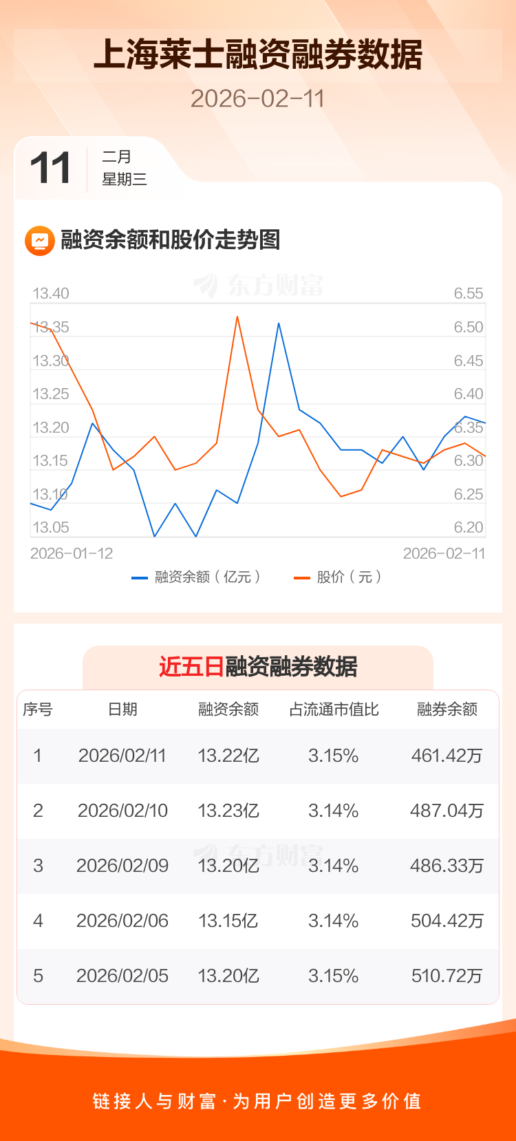 交易所最新数据显示,上海莱士于2026年2月11日获融资买入1412.92万元,融资偿还1494.43万元,当日融资净偿还81.51万元。目前,该股融资余额13.22亿,占流通市值比例为3.15%。