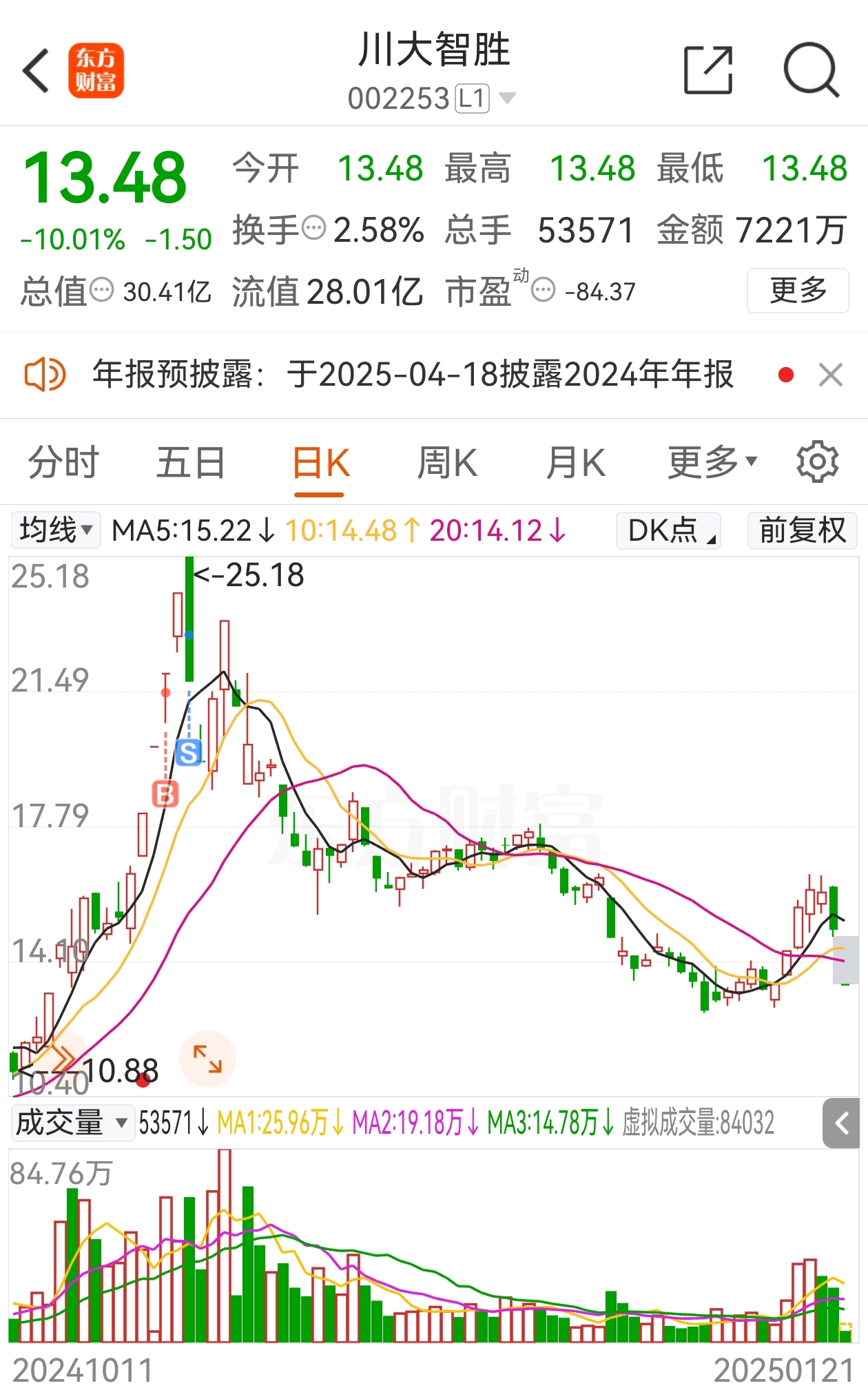 $川大智胜(SZ002253)$ 刀口上舔了一口血!!