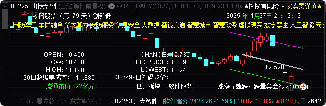10.73,2025/01/27 Close10.82,川大智胜002253。