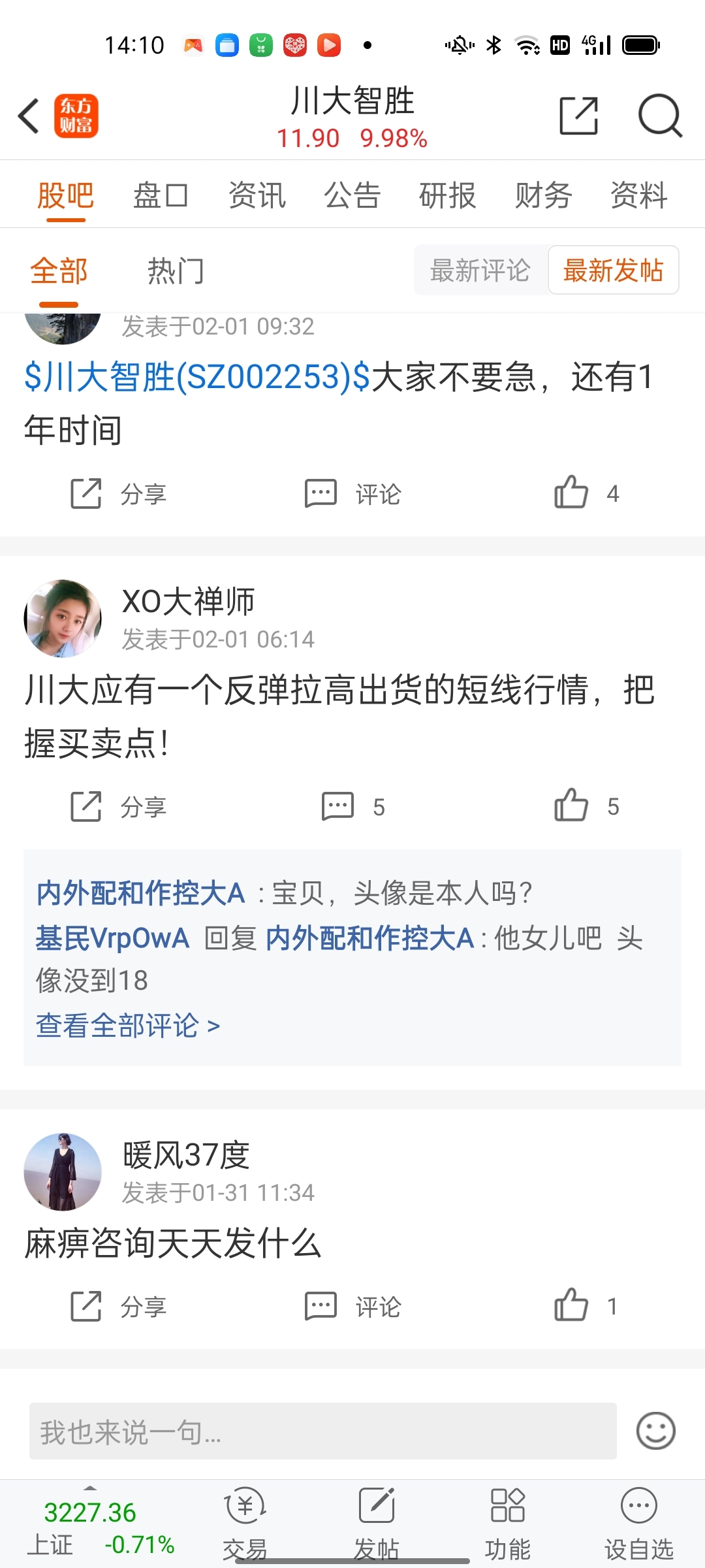 温馨提示: 1.根据《证券法》规定,禁止编造、传播虚假信息或者误导性信息,扰乱证券市场;2.用户在本社区发表的所有资料、言论等仅代表个人观点,与本网站立场无关,不对您构成任何投资建议。用户应基于自己的独立判断,自行决定证券投资并承担相应风险。《东方财富社区管理规定》