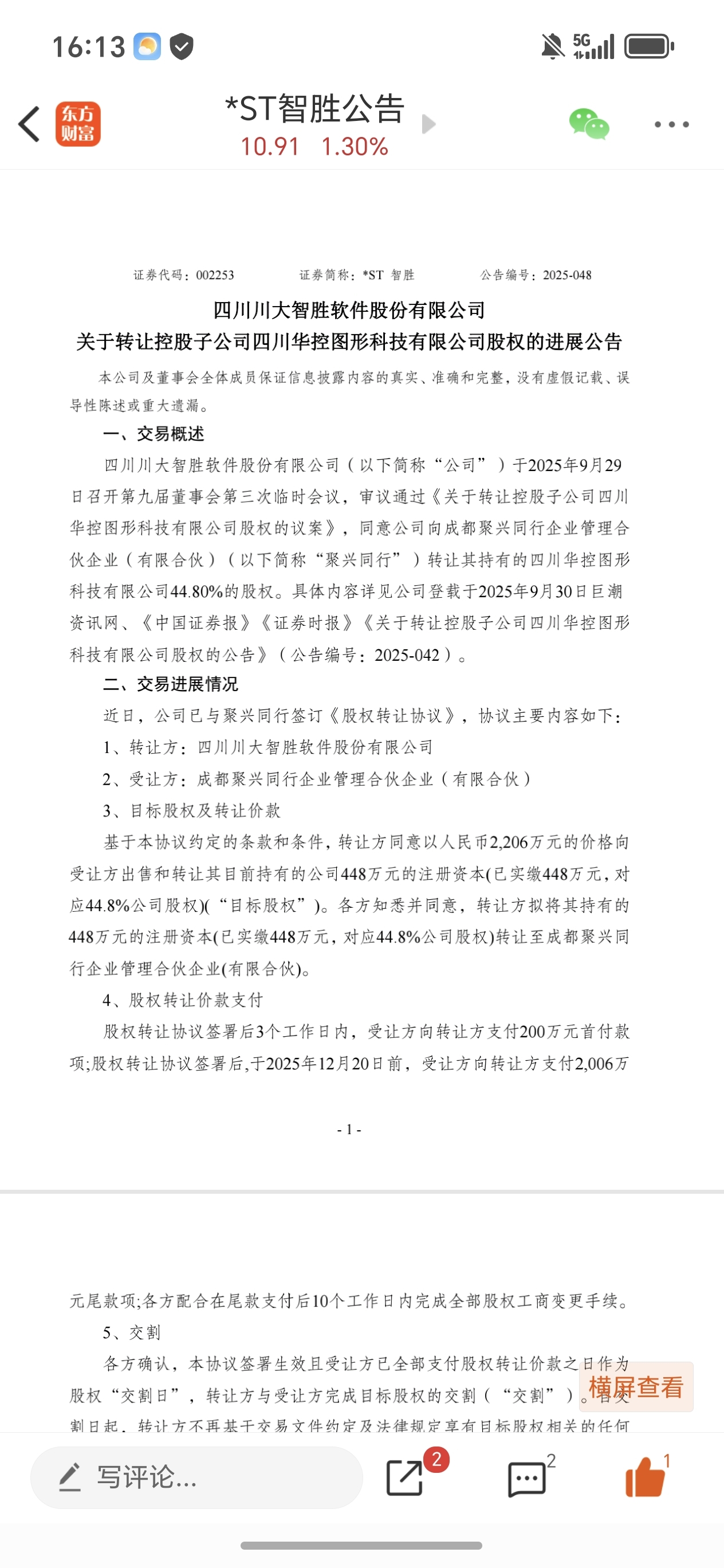 $*ST智胜(SZ002253)$ 至少保壳成功了,这就值13、14元。一旦重组一飞冲天