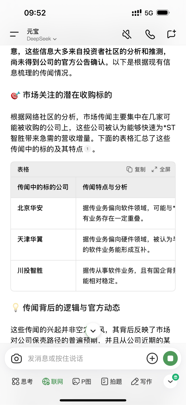 综合来看,现金收购北京华安和川投智胜,为ST智胜提供了一条理论上可行的保壳路径。但这无疑是一场与时间的赛跑,成功与否取决于国资股东的决策效率、收购谈判的进度,以及最终能否在12月31日前完成财务并表*。目前已经持有两个公司股权