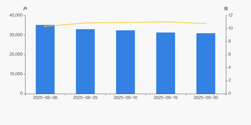2025年8月8日至今,公司股东户数显著下降,区间跌幅为12.05%。2025年8月8日至2025年9月30日区间股价上涨4.15%。