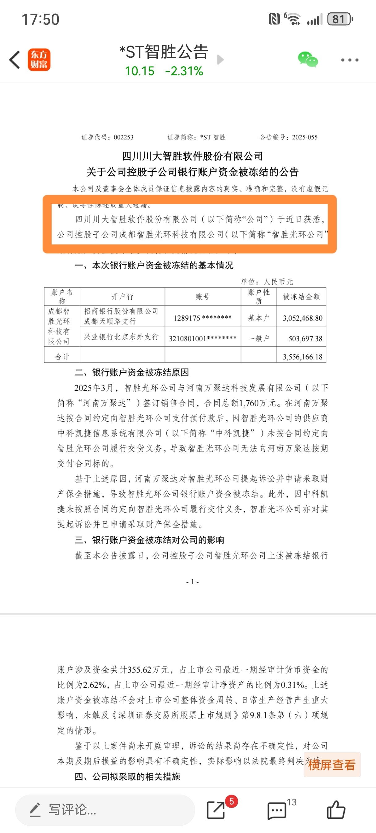 $*ST智胜(SZ002253)$ 看重点,于近日获悉,也就是之前的消息,特意安排在今日公告。
