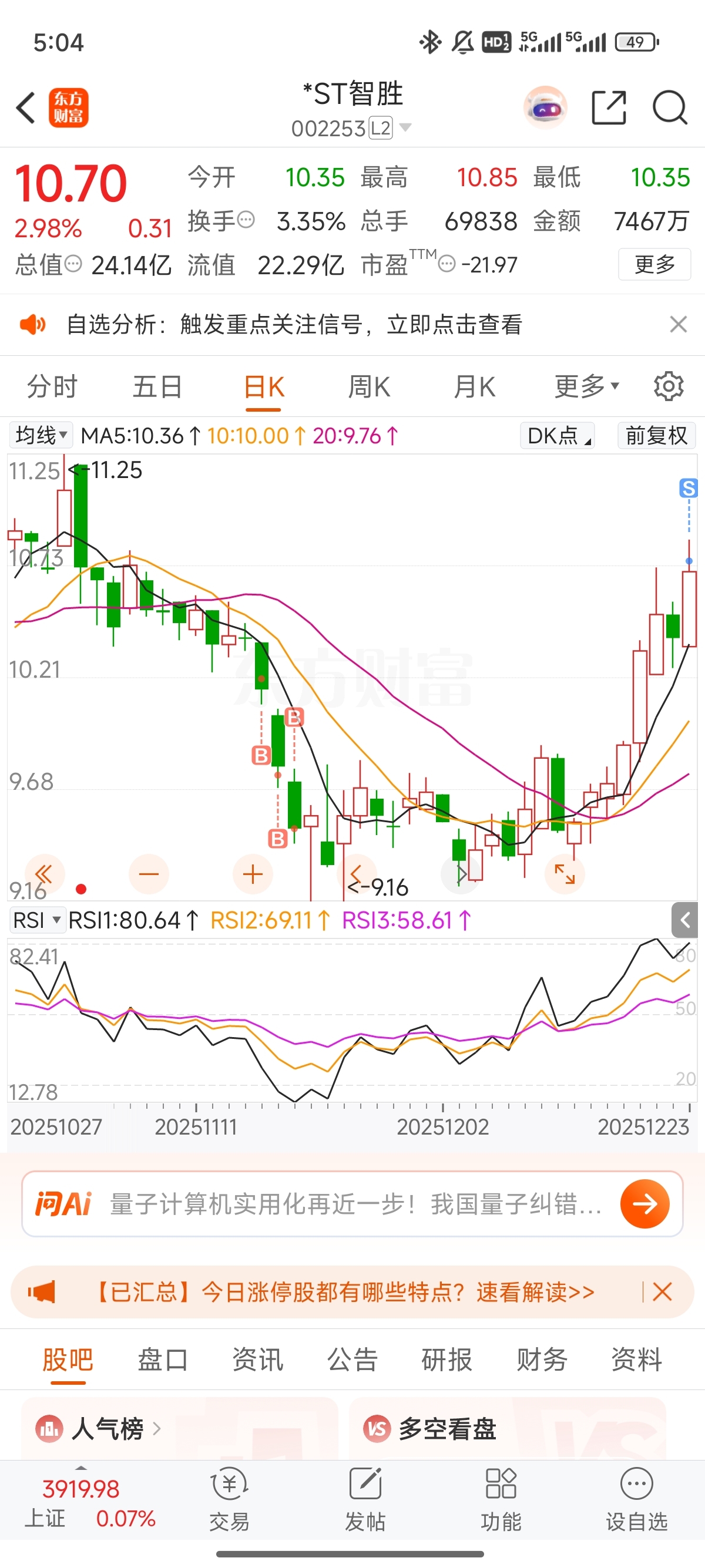 $*ST智胜(SZ002253)$ 走了,谢谢再见留下的发财