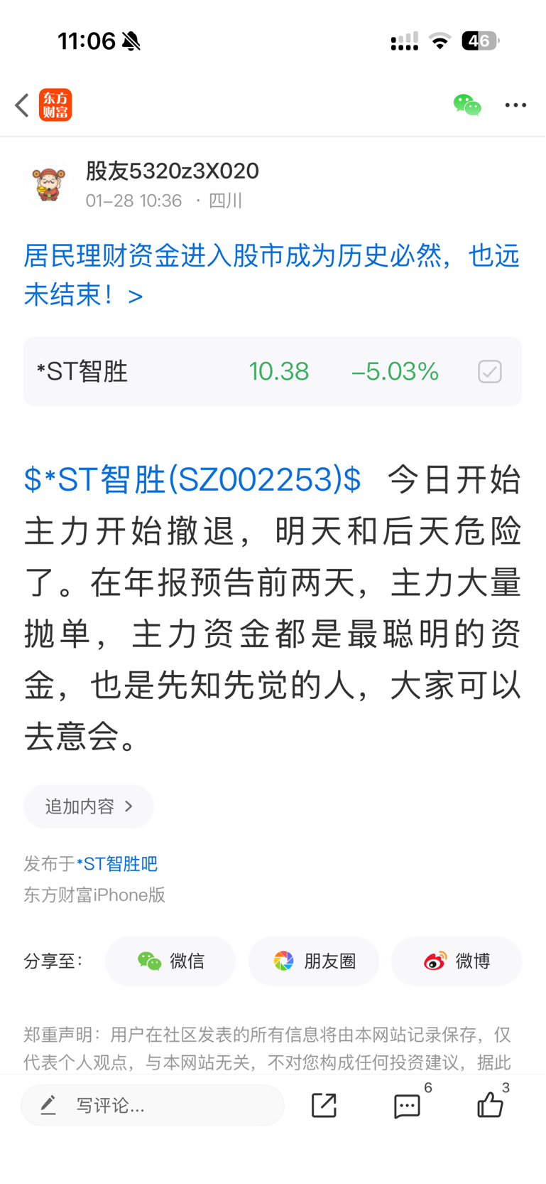 温馨提示: 1.根据《证券法》规定,禁止编造、传播虚假信息或者误导性信息,扰乱证券市场;2.用户在本社区发表的所有资料、言论等仅代表个人观点,与本网站立场无关,不对您构成任何投资建议。用户应基于自己的独立判断,自行决定证券投资并承担相应风险。《东方财富社区管理规定》