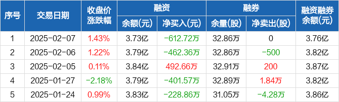 泰和新材:融资净偿还612.72万元,融资余额3.73亿元(02-07)