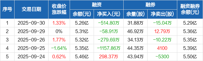 泰和新材:连续4日融资净偿还累计2011.26万元(09-30)
