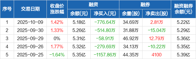 泰和新材:连续5日融资净偿还累计2787.9万元(10-09)