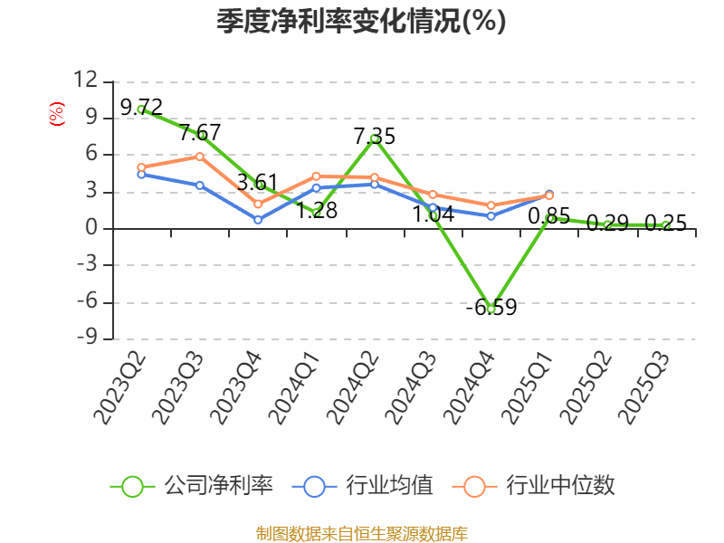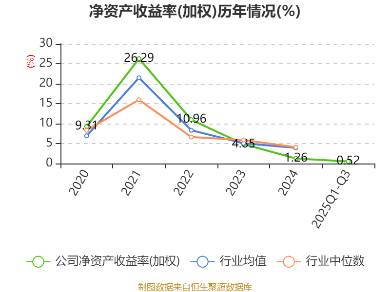 盈利能力方面, 2025年前三季度公司加权平均净资产收益率为0.52%,同比下降1.6个百分点。公司2025年前三季度投入资本回报率为0.22%,较上年同期下降0.59个百分点。