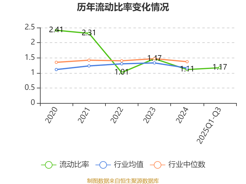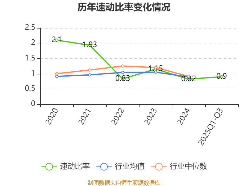 2025年前三季度,公司流动比率为1.17,速动比率为0.9。