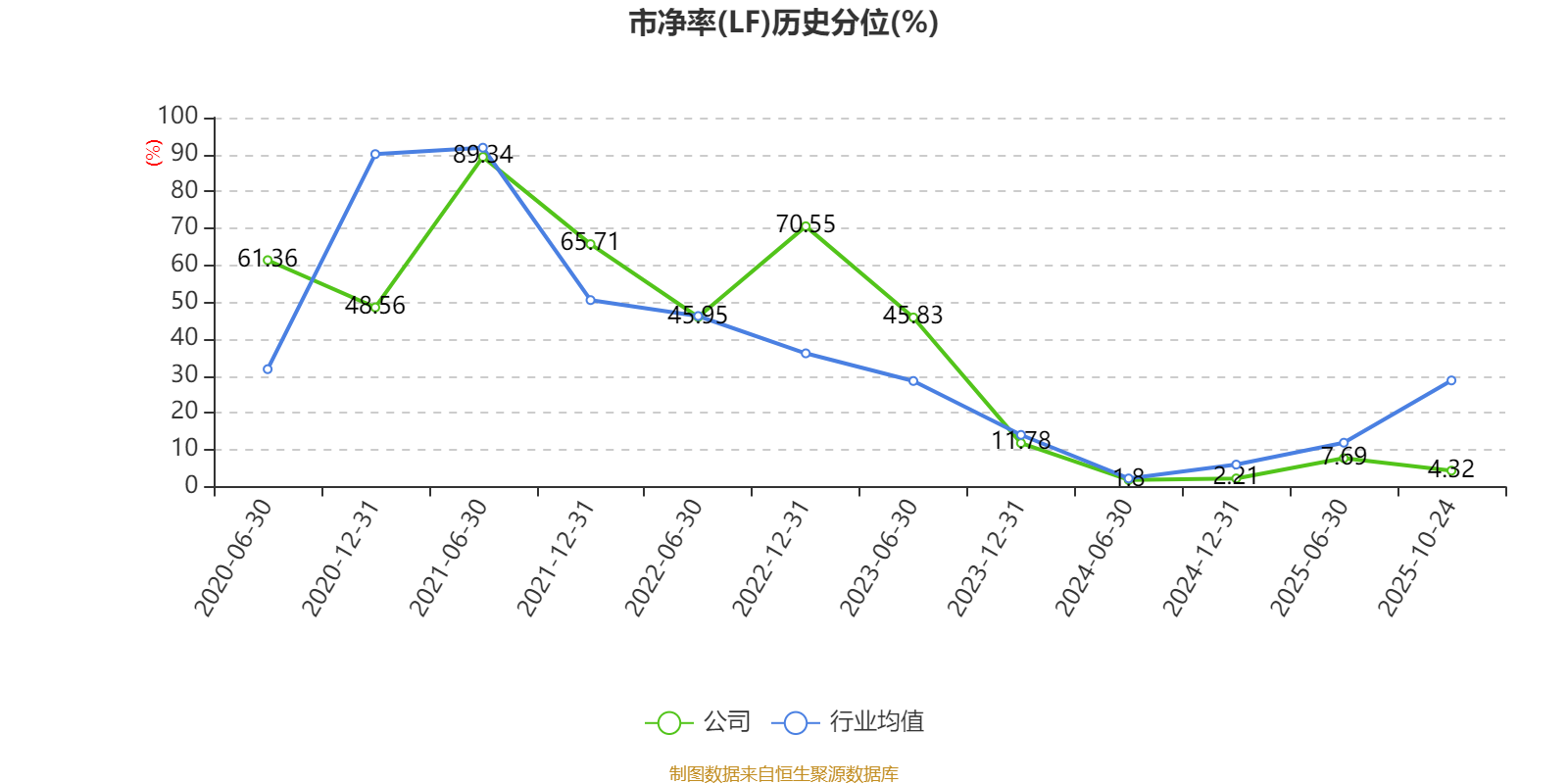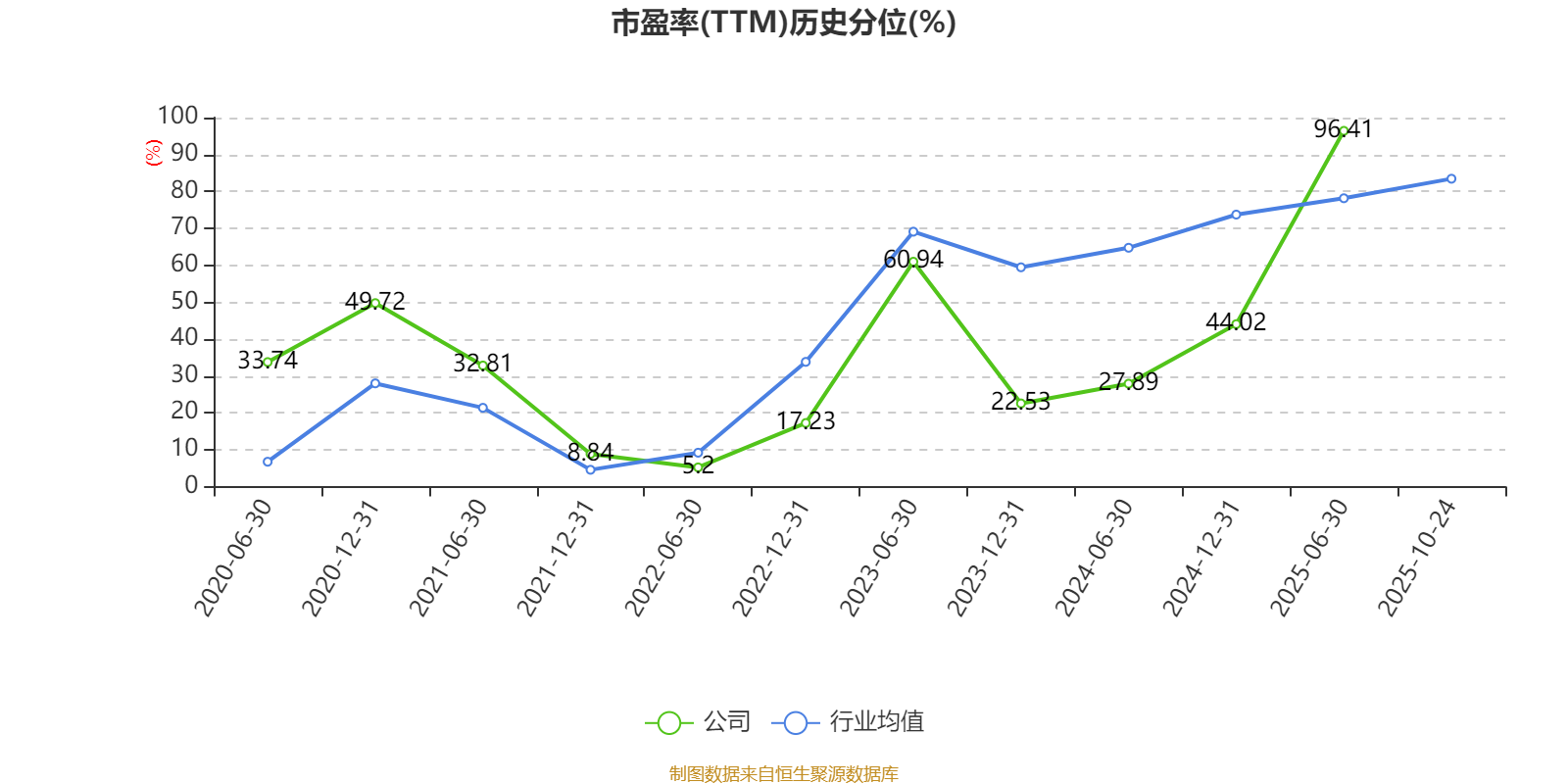 市盈率、市净率为负时,不显示当期分位数,会导致折线图中断。