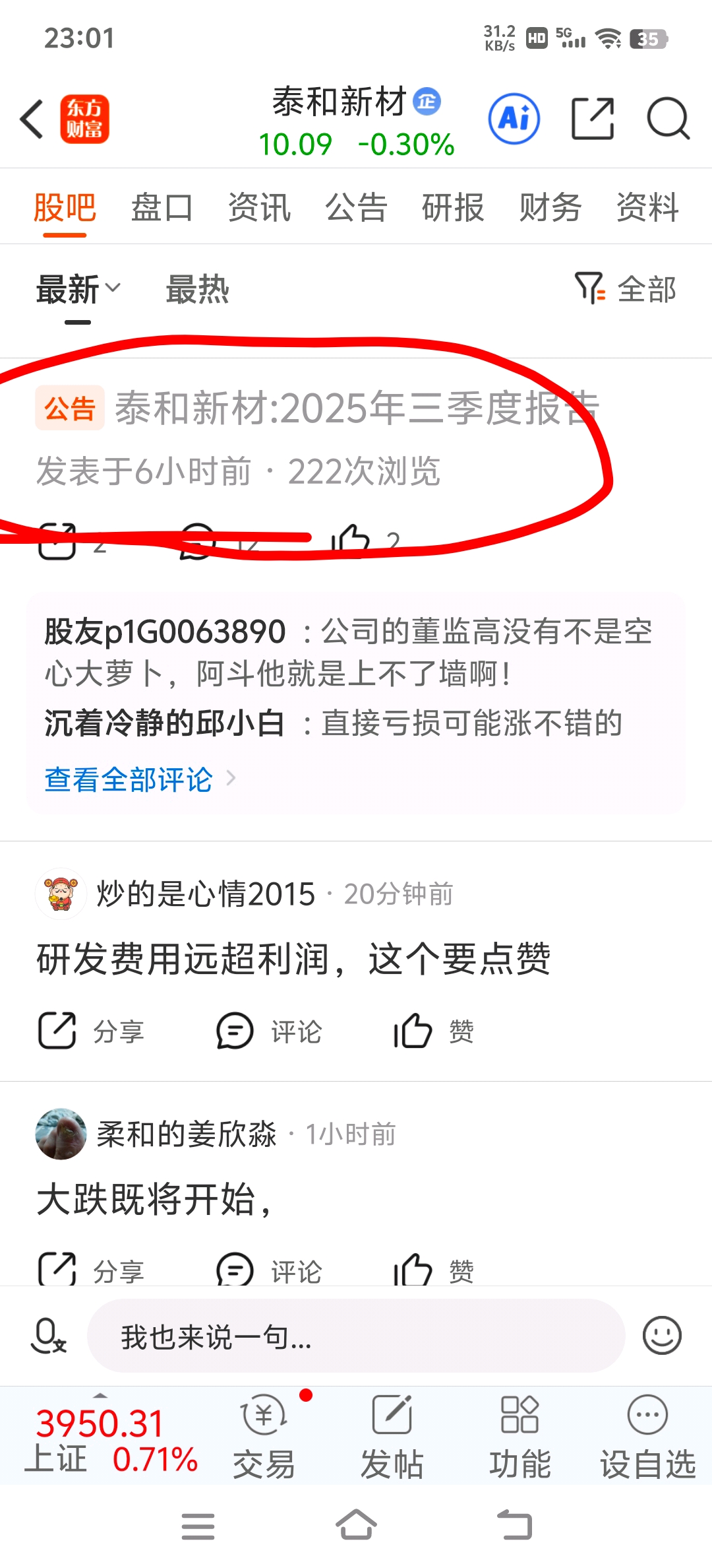 哈哈,泰和差不多已经到了无人问津地步了,到目前为止三季报已经发出来6个多小时了却