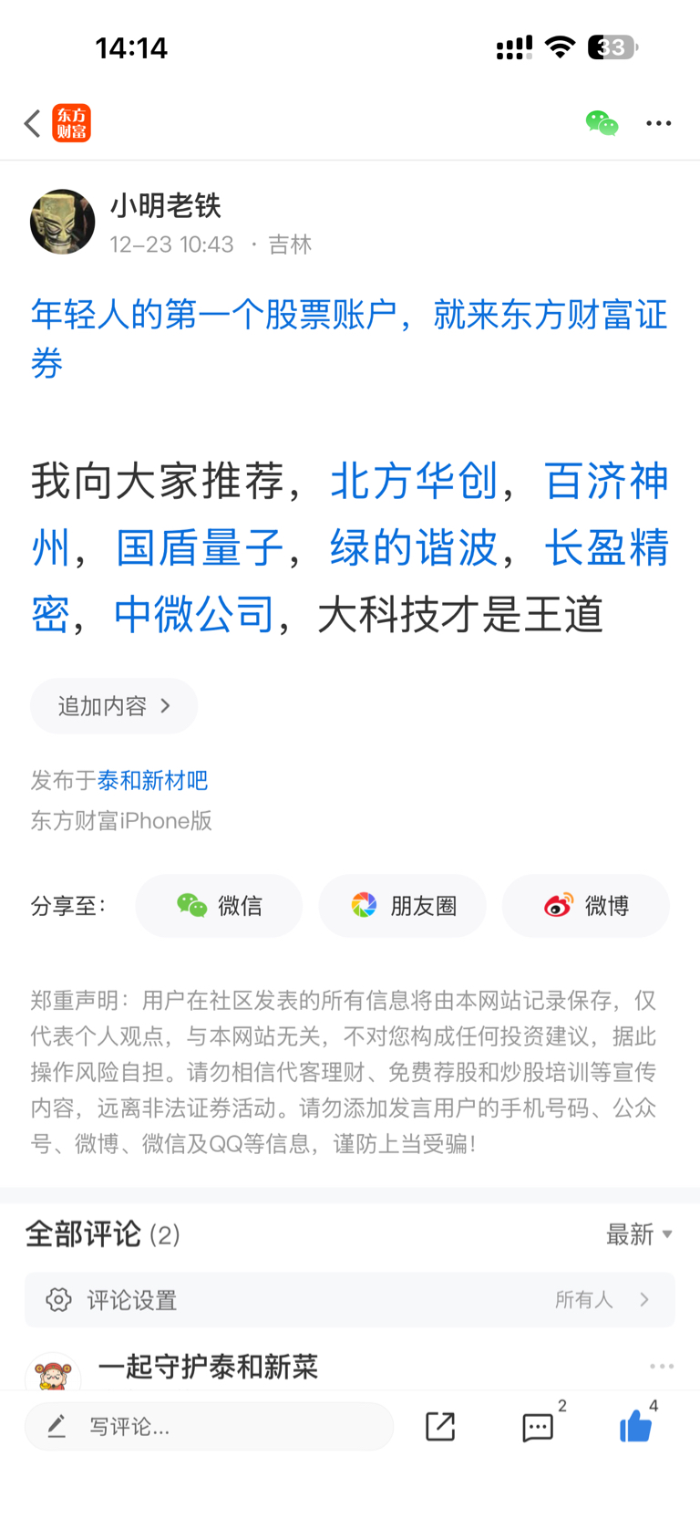 温馨提示: 1.根据《证券法》规定,禁止编造、传播虚假信息或者误导性信息,扰乱证券市场;2.用户在本社区发表的所有资料、言论等仅代表个人观点,与本网站立场无关,不对您构成任何投资建议。用户应基于自己的独立判断,自行决定证券投资并承担相应风险。《东方财富社区管理规定》