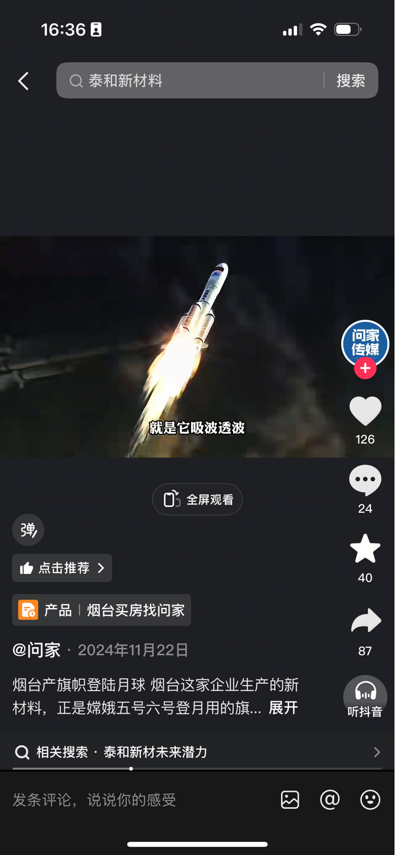 $泰和新材(SZ002254)$ 兄弟们 我们也有航天了 怎么不涨 主力没钱吗