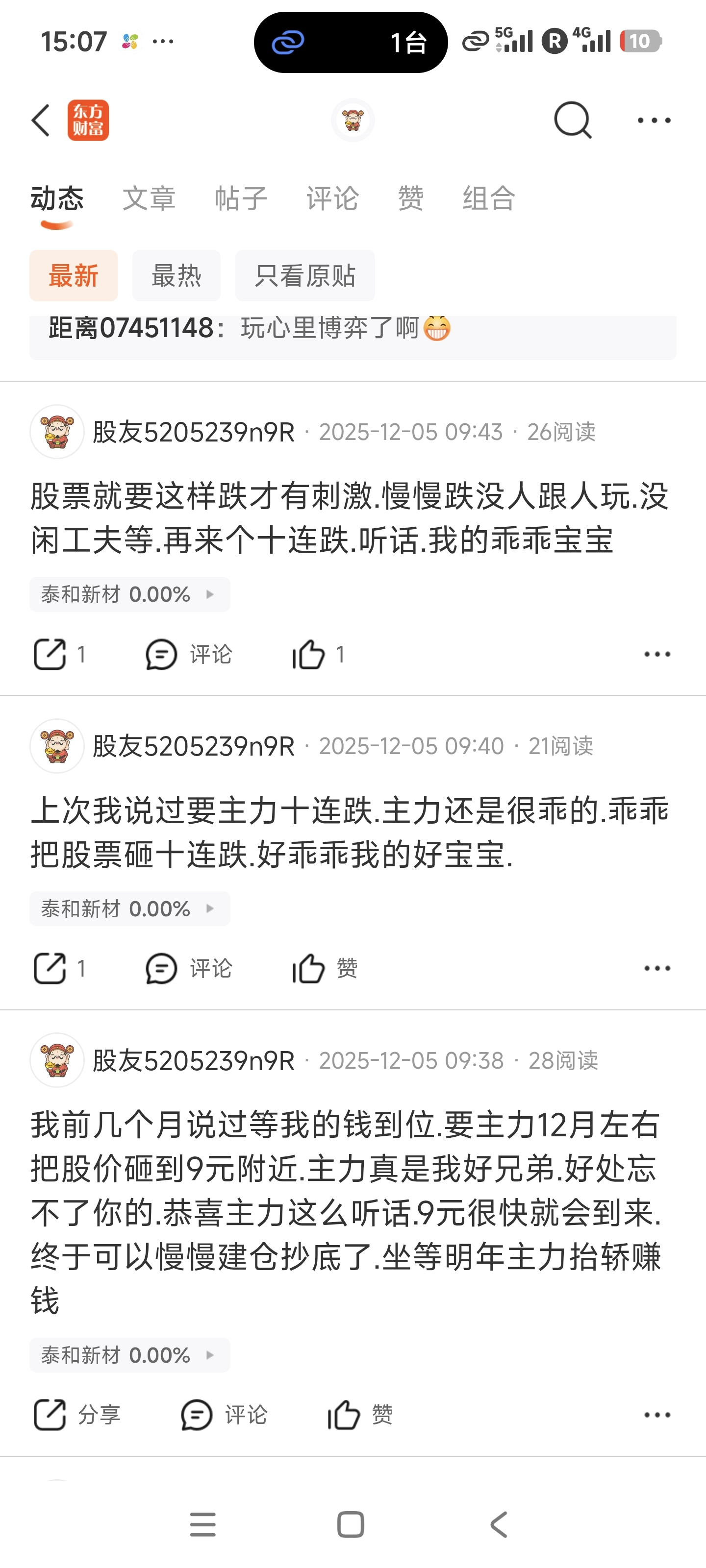 温馨提示: 1.根据《证券法》规定,禁止编造、传播虚假信息或者误导性信息,扰乱证券市场;2.用户在本社区发表的所有资料、言论等仅代表个人观点,与本网站立场无关,不对您构成任何投资建议。用户应基于自己的独立判断,自行决定证券投资并承担相应风险。《东方财富社区管理规定》