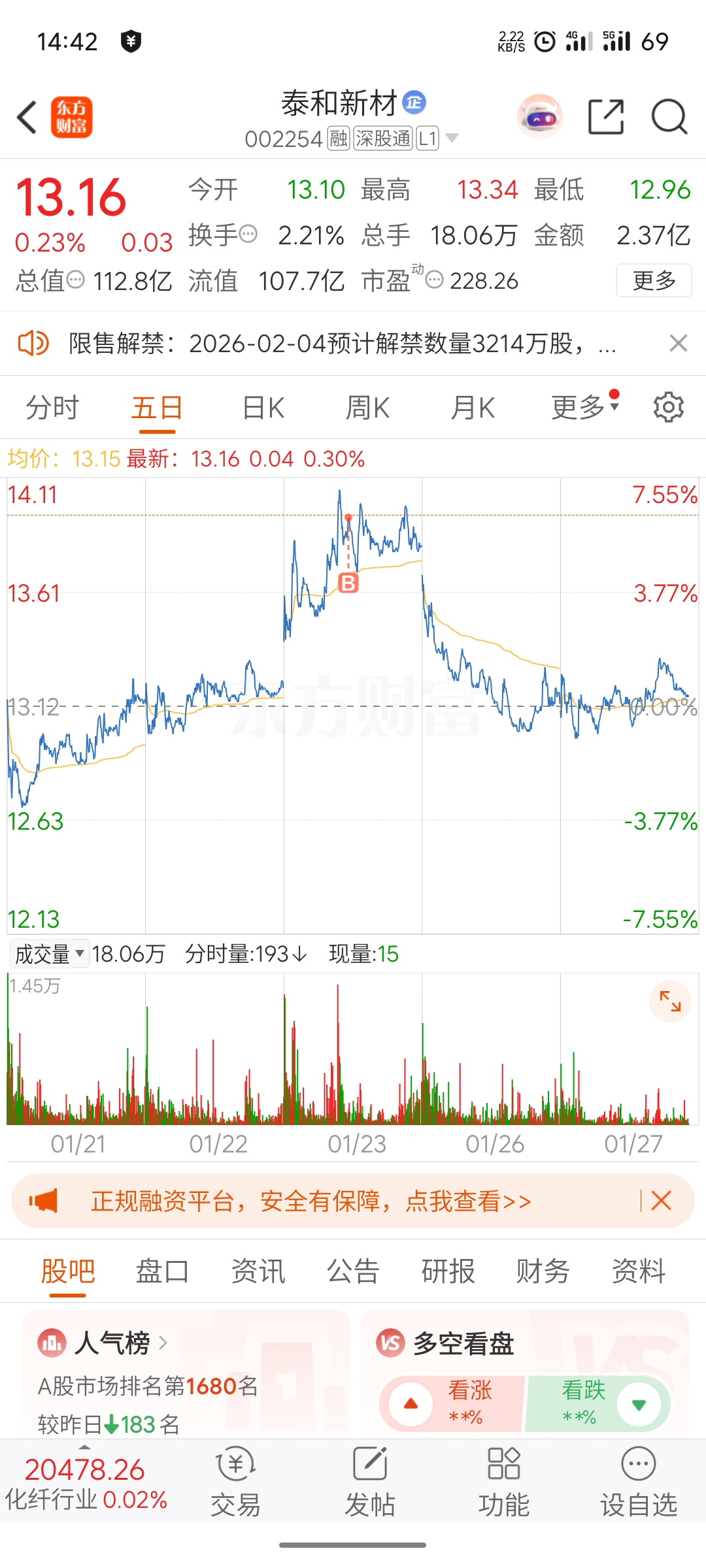 $泰和新材(SZ002254)$ 好怕怕哦 玛卡巴卡
