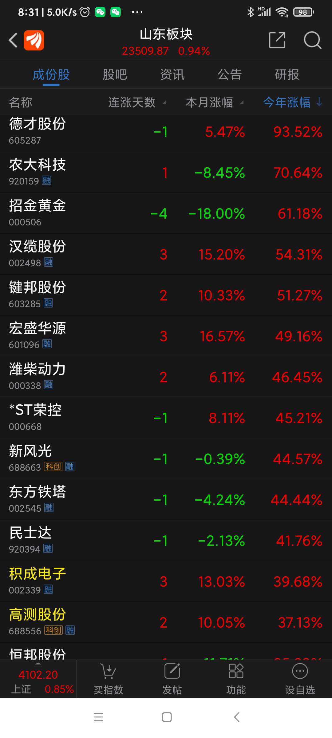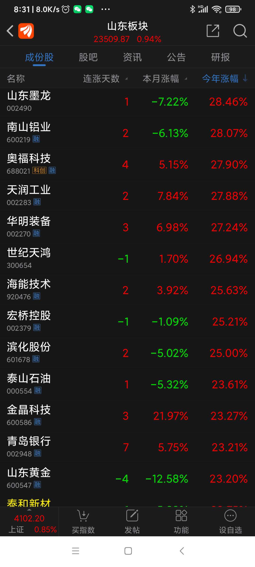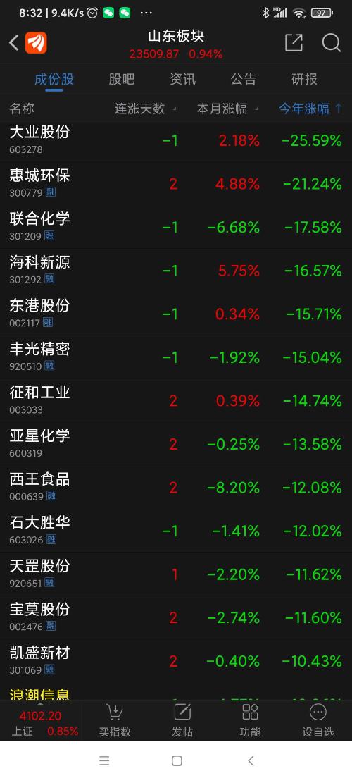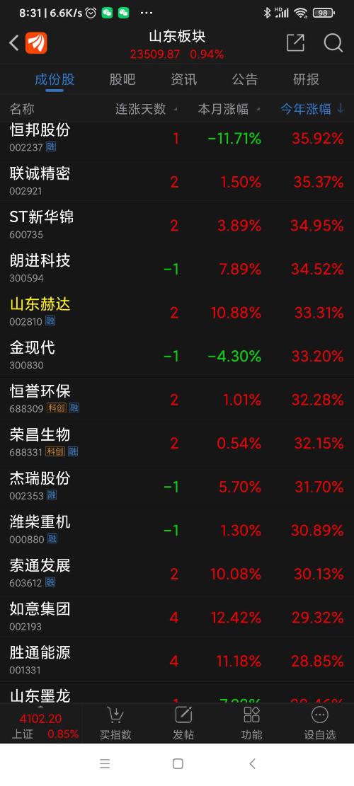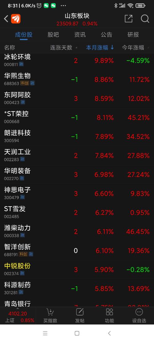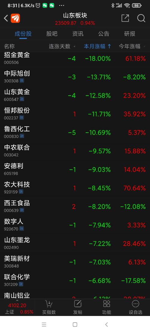 山东板块26年2月表现。