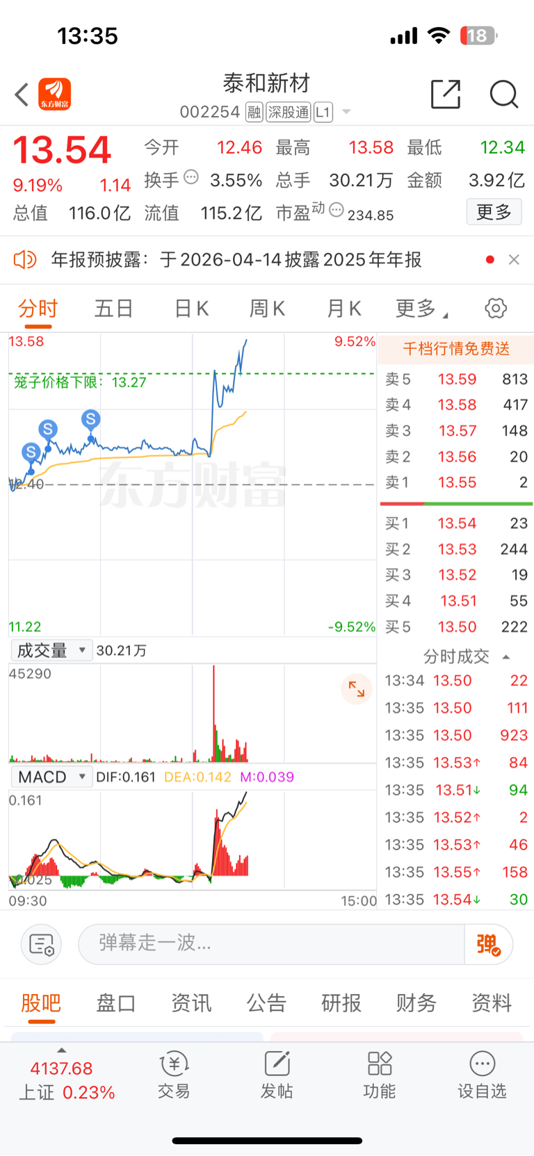 $泰和新材(SZ002254)$ 不够坚定,感谢主力发小红包