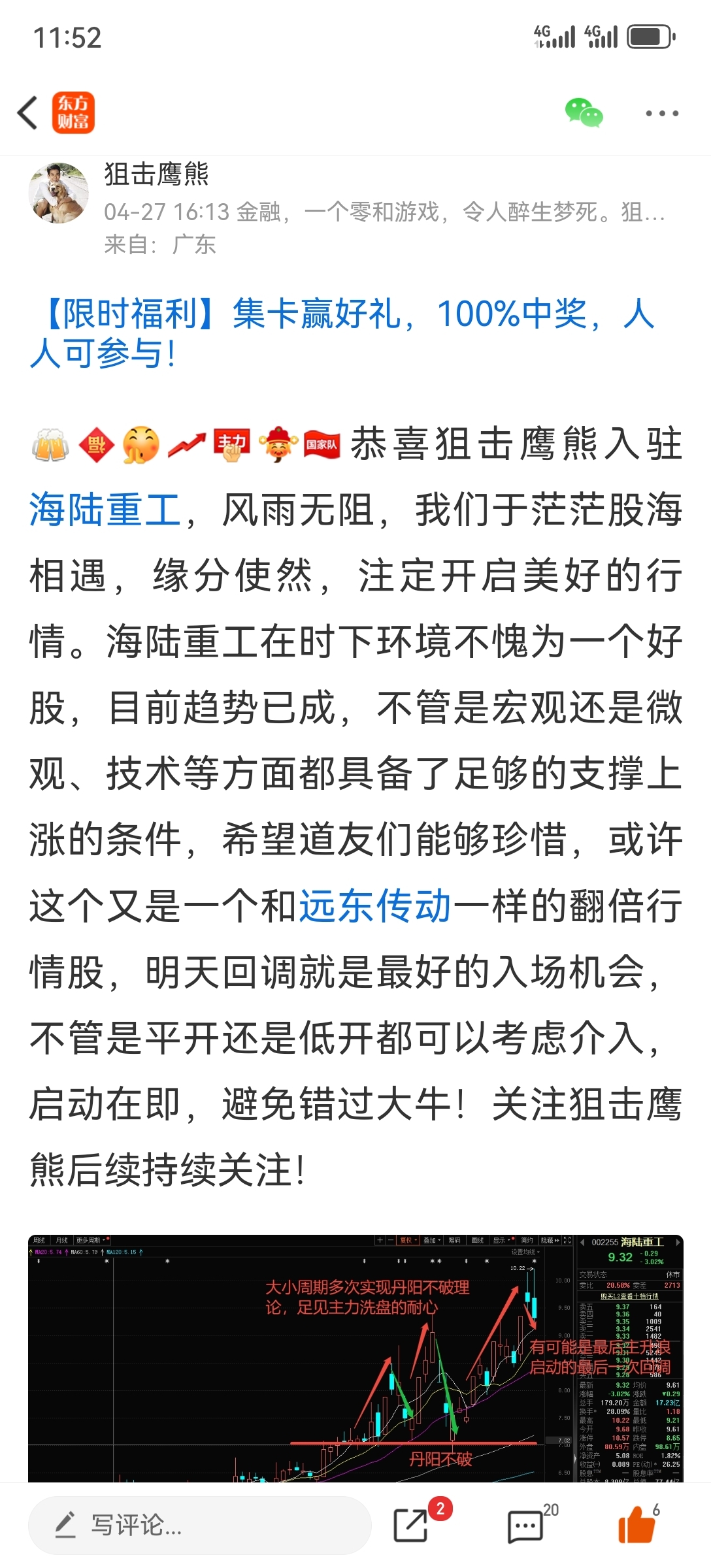 恭喜海陆重工的道友,开启主升行情,前面狙击的时候还是8块多,现在已经突破十块,这波行情看翻倍,持续关注狙击鹰熊,为你解盘,票不在多在于静,不动如山稳如狗。