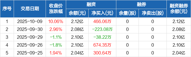 海陆重工:融资净买入466.06万元,融资余额2.12亿元(10-09)